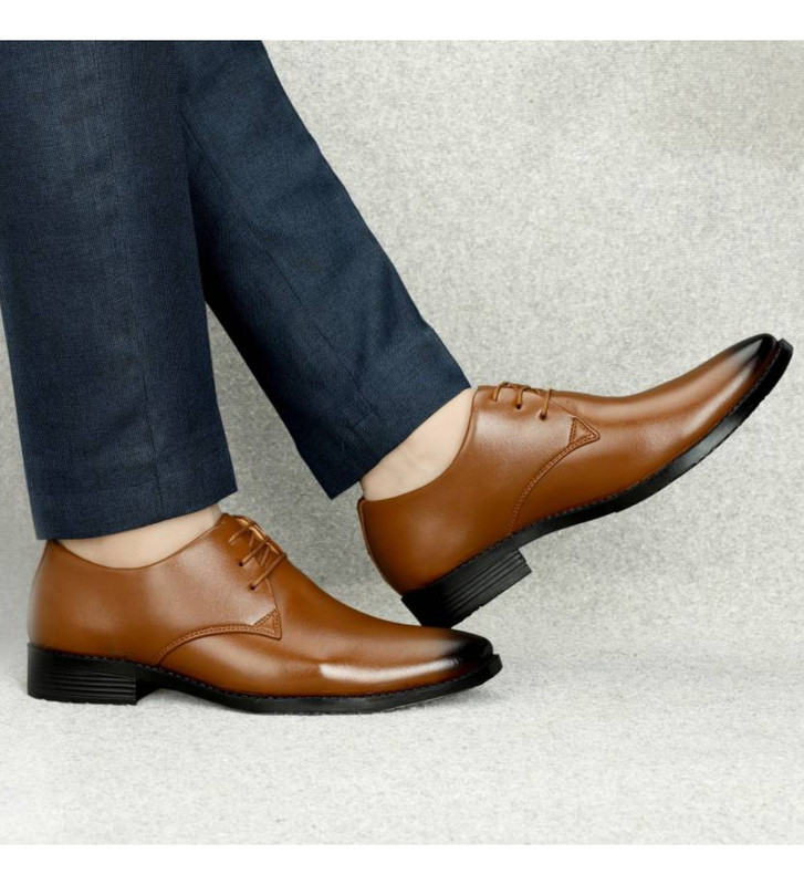 Men’s Faux Leather Formal Shoes, ? Color: Tan, ? Material: Faux Leather, ? : 6, ? Closure Type: Lace-Up, ?
