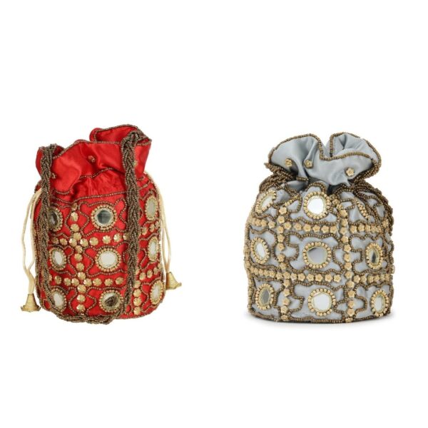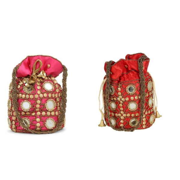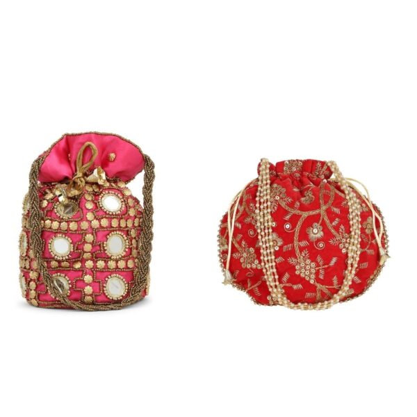 Combo – Designer Embroidered Potli Bag – Red & Pink