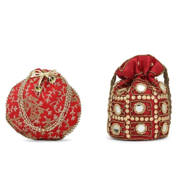 Combo – Designer Embroidered Potli Bag – Red & Red