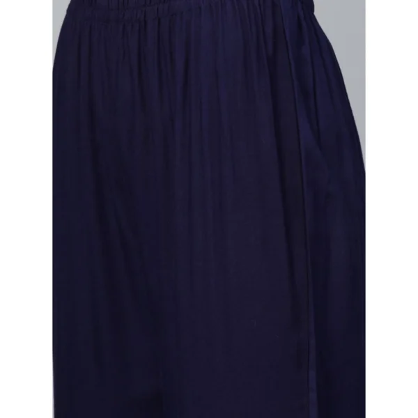Women’s Casual Sleeveless Ikkat Rayon Kurti and Palazzo Set (Navy Blue)