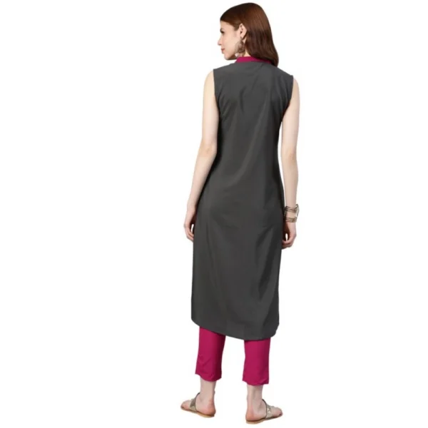 Women’s Casual Sleeveless Solid Crepe Kurti And Palazzo Set (Grey)