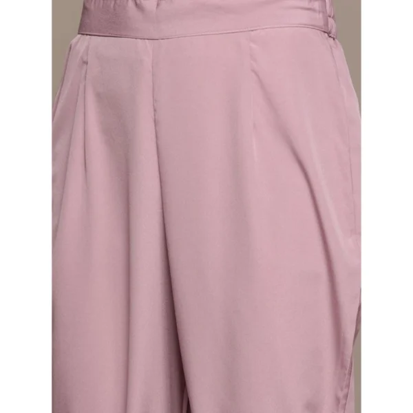 Women’s Casual sleeveless Solid Crepe Kurti And Pant Set (Pink)