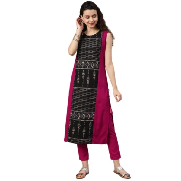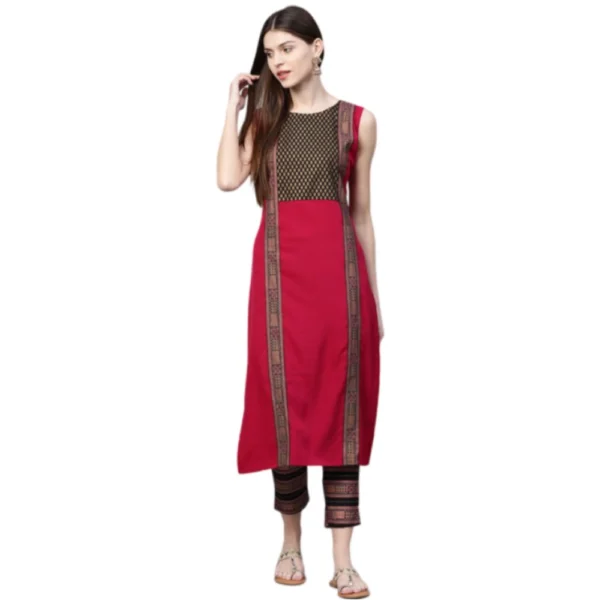 Women’s Casual sleeveless Tribal Crepe Kurti and Pant Set (Pink)