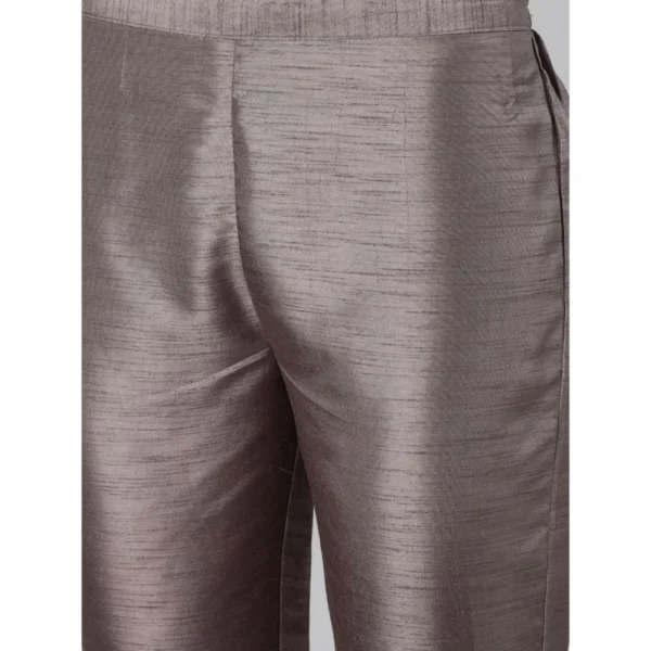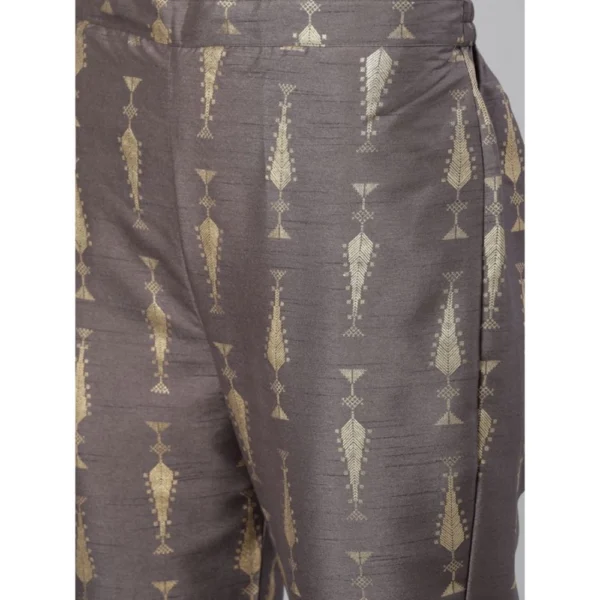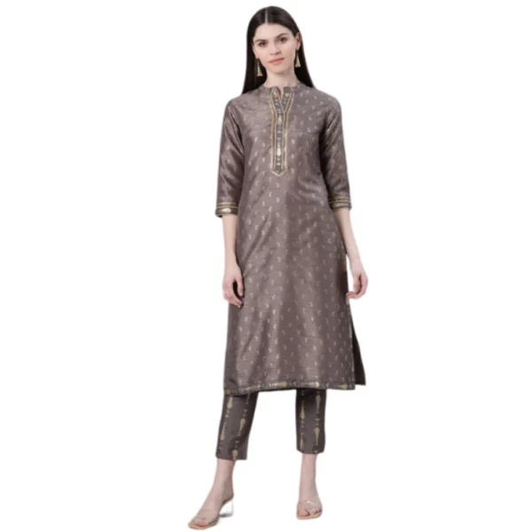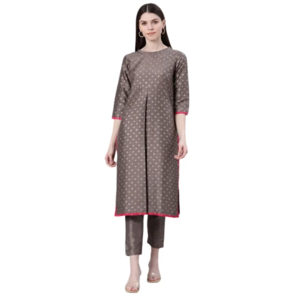 Women’s Casual 3-4Th Sleeve Ethnic Motifs Poly Silk Kurti And Pant Set (Grey)
