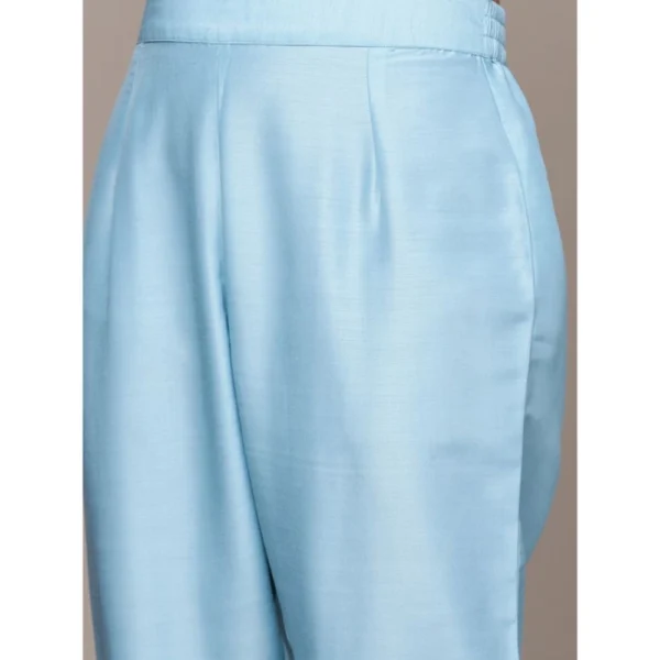 Women's Casual 3-4Th Sleeve Ethnic Motifs Poly Silk Kurti And Pant Set