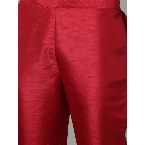 Women’s Casual 3-4Th Sleeve Ethnic Motifs Poly Silk Kurti And Pant Set (Red)