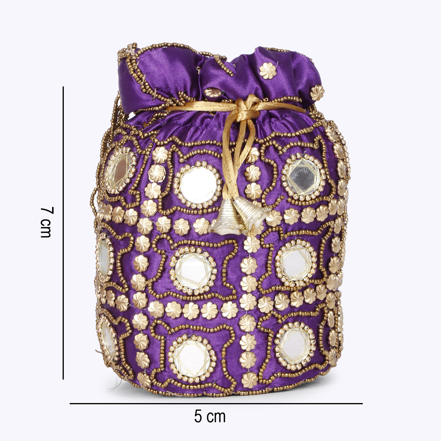 Combo – Designer Embroidered Potli Bag – Golden & Purple