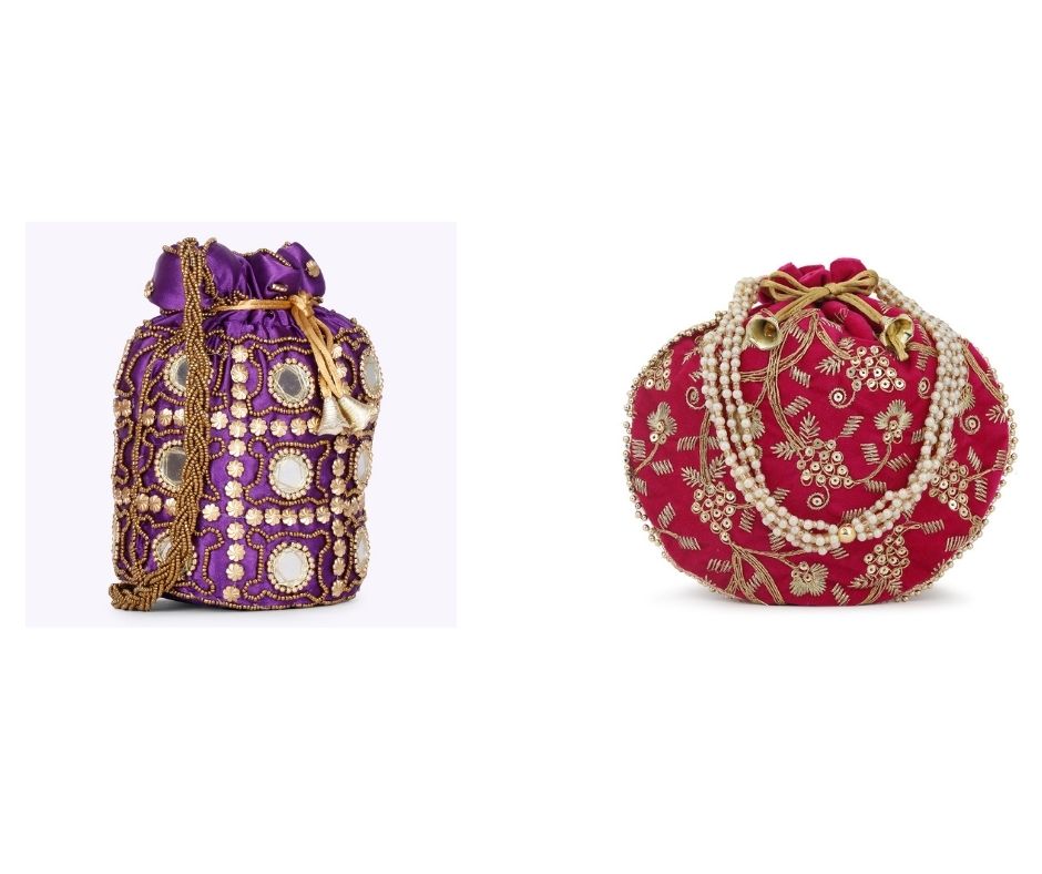 Combo – Designer Embroidered Potli Bag – Purple & Pink