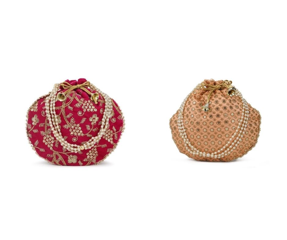 Be the first to review “Designer Embroidered Potli Bag Combo- Pink & Beige” Cancel reply