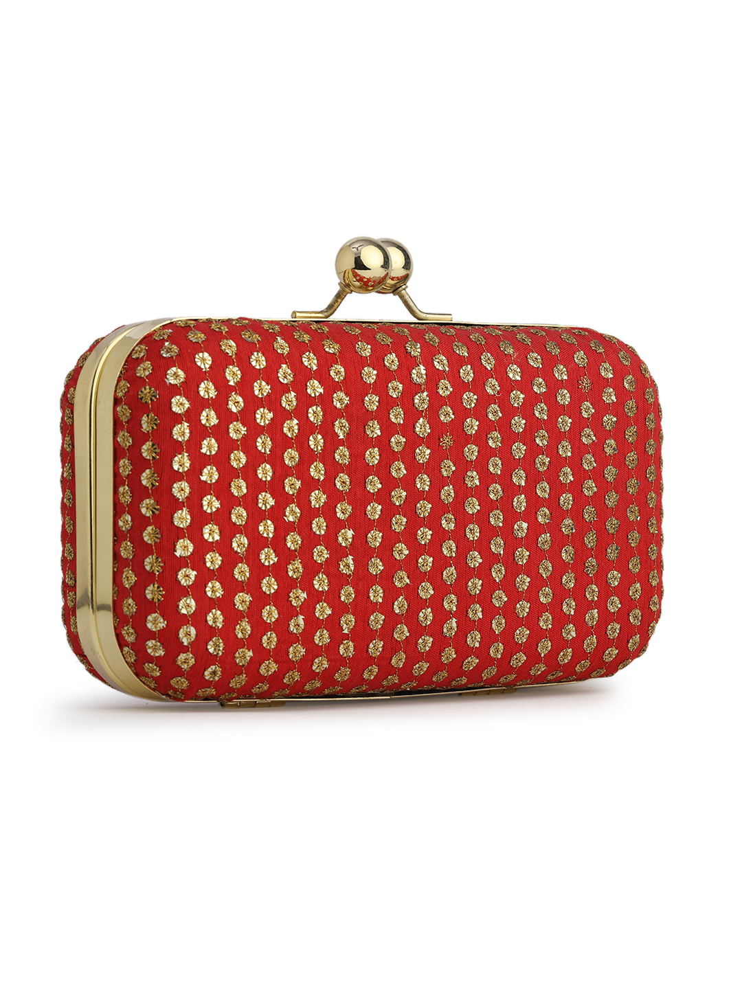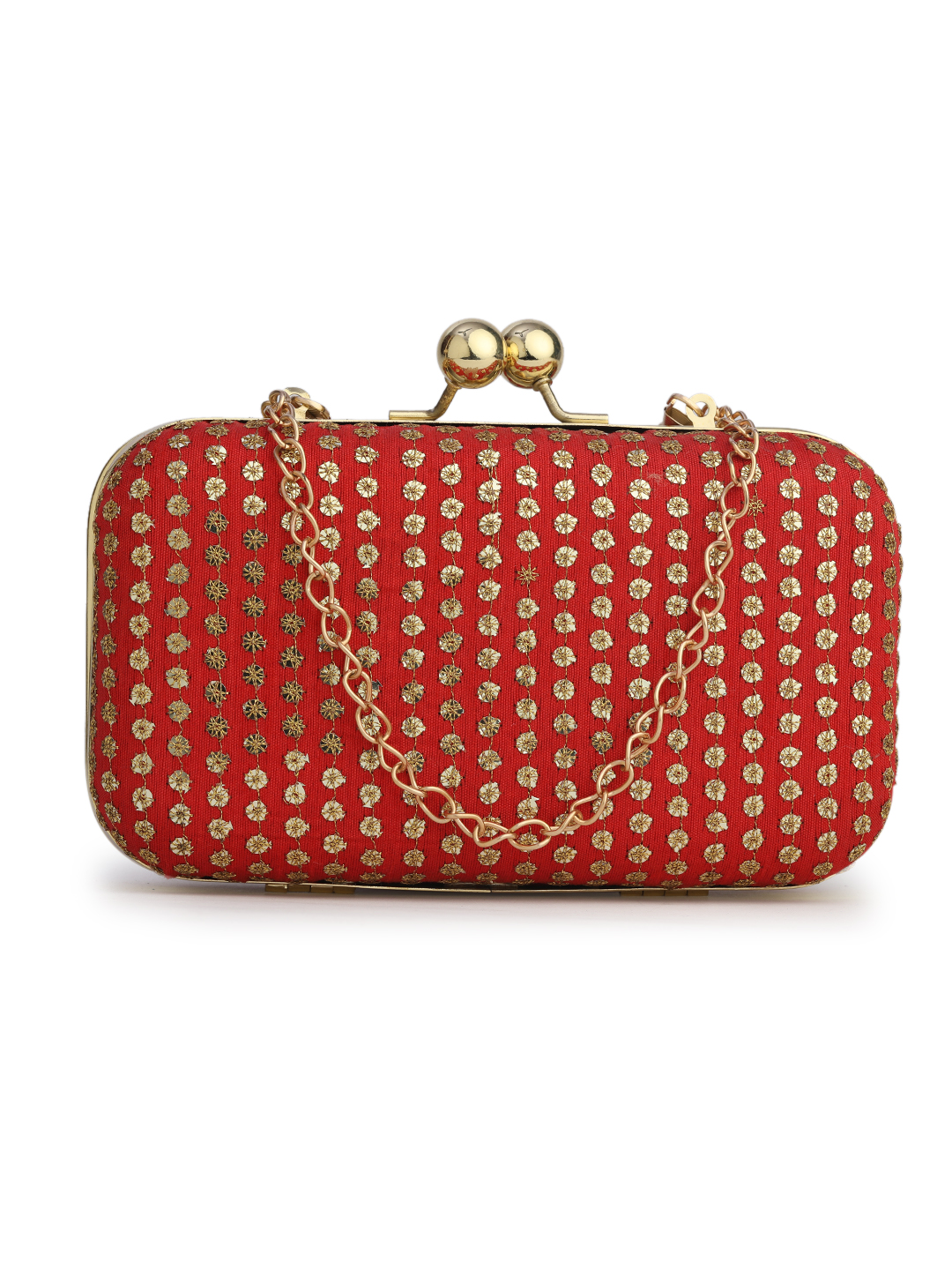 Red & Gold Embroidered Box Clutches For Girls and womens