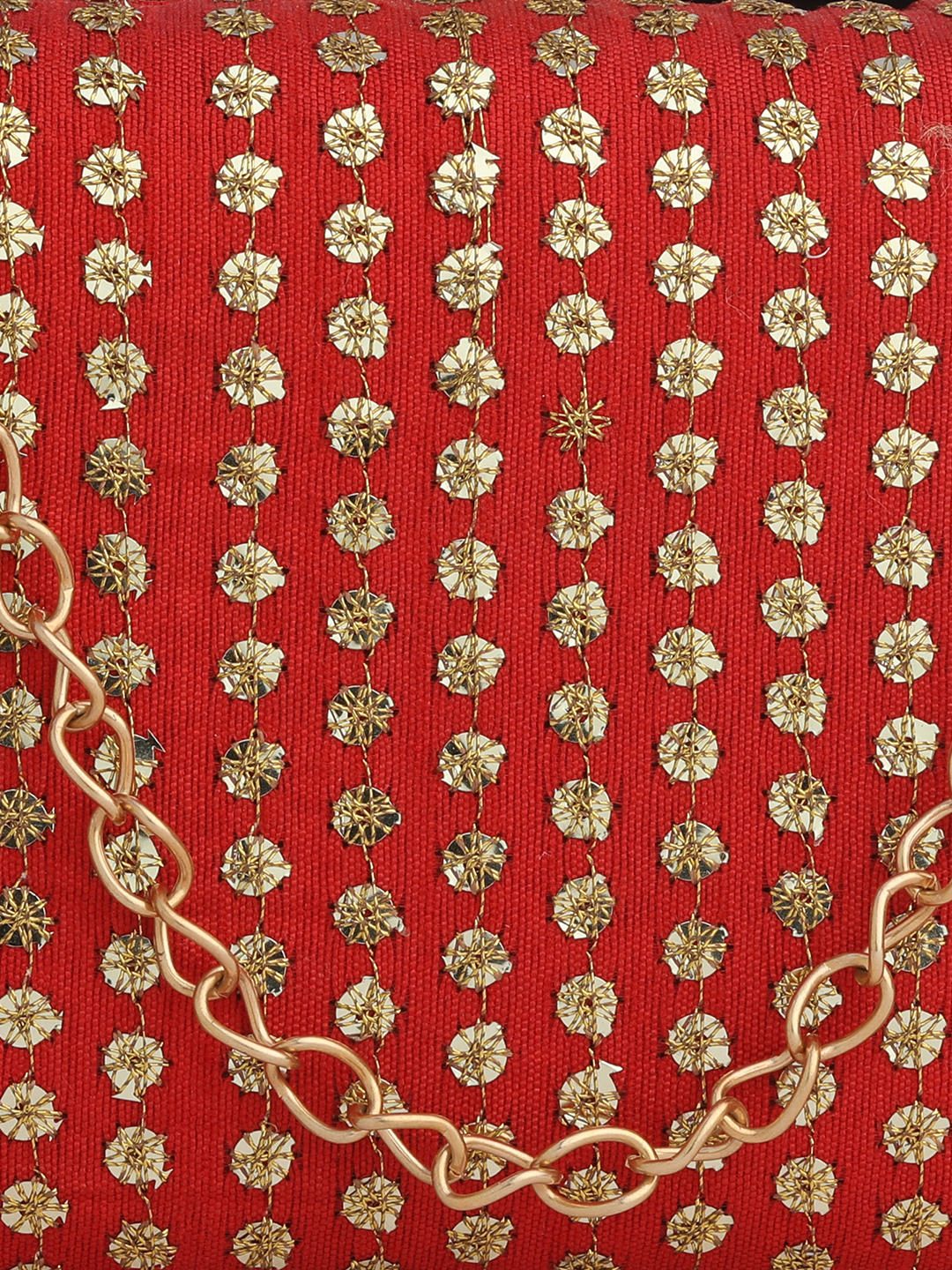 Red & Gold Embroidered Box clutches, Has gold chain shoulder strap, 1 main compartment with Kiss closure