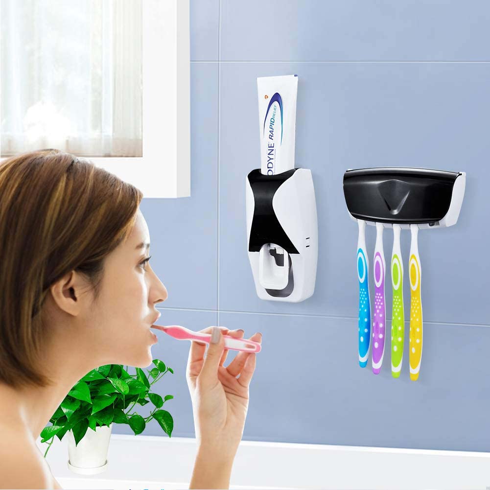 Automatic Toothpaste Dispenser and 5 Toothbrush Holder for Home Automatic touch toothpaste dispenser and brush holder set is designed for your convenience.