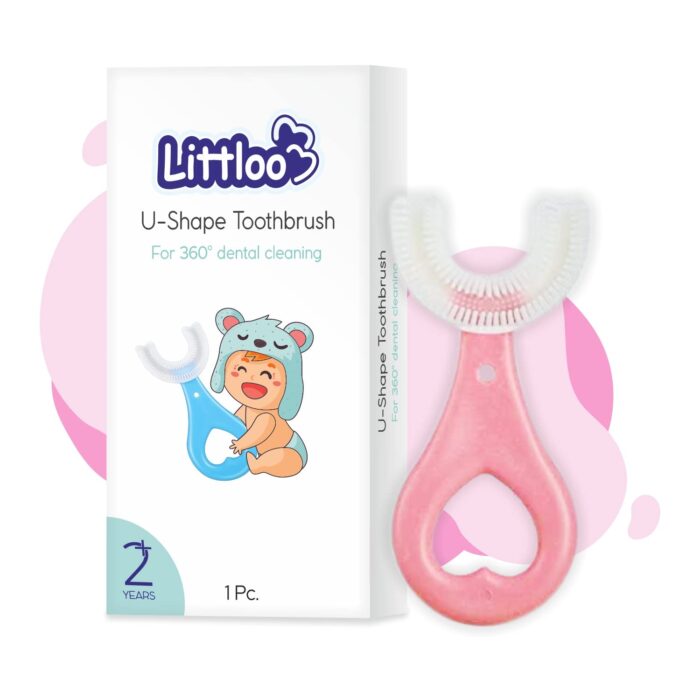U-Shaped Kids Manual Toothbrush,Silicone Toothbrush,Food Grade Quality,Soft & Elastic Bristles For 360 Degree Dental Cleaning,Toxic-Free Material,Toothbrush -Pack Of 1(Pink)