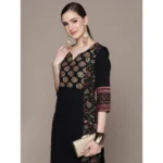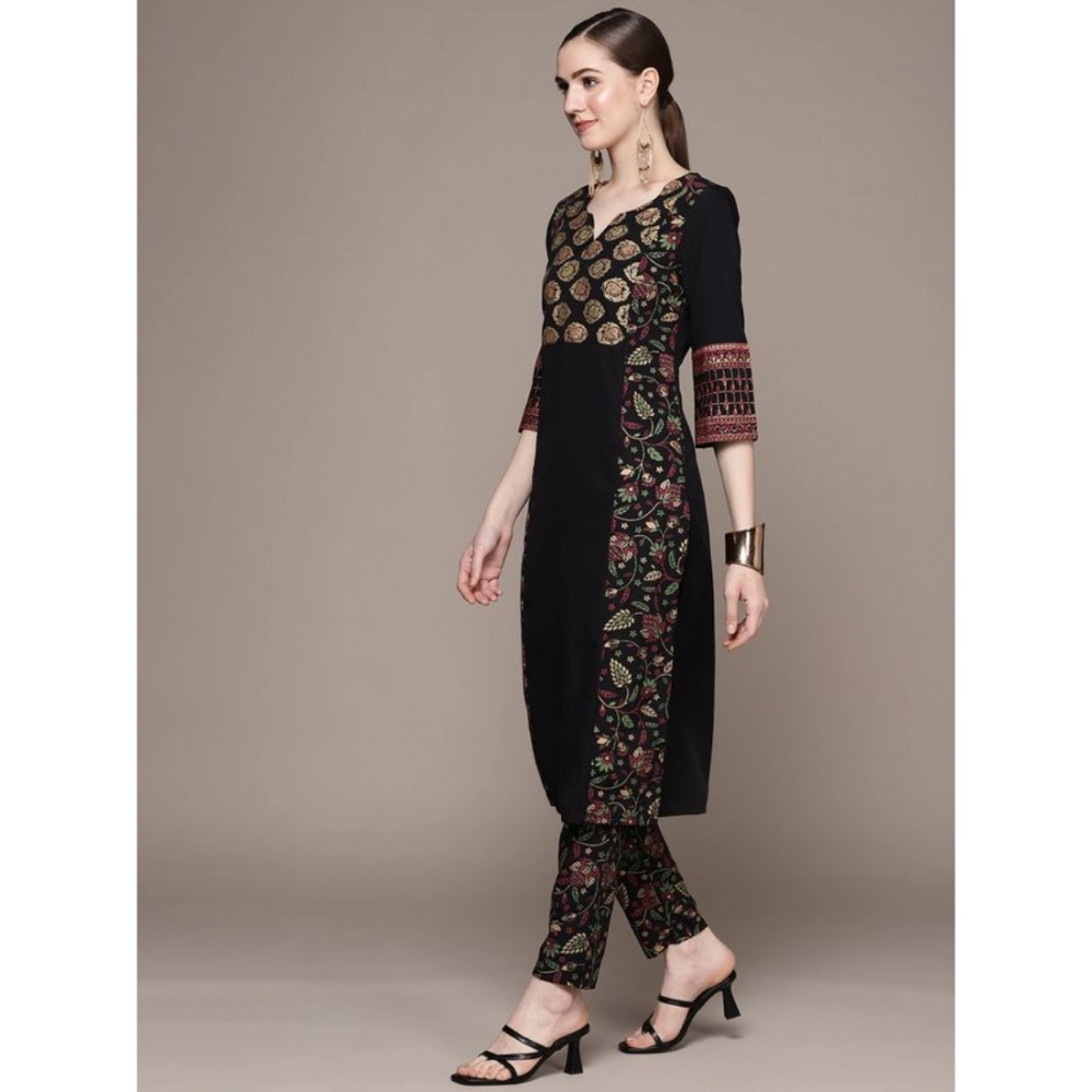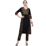 Women’s Casual 3-4Th Sleeve Ethnic Motifs Crepe Kurti And Pant Set