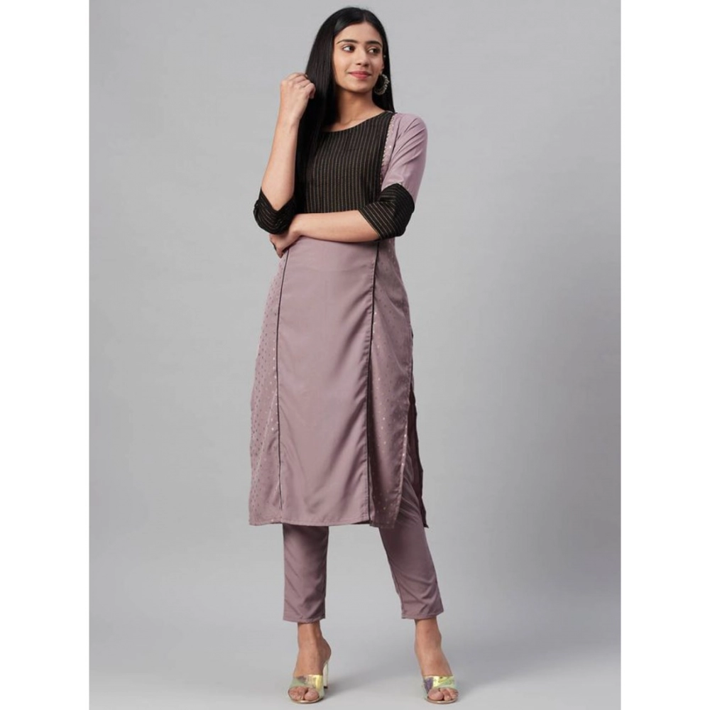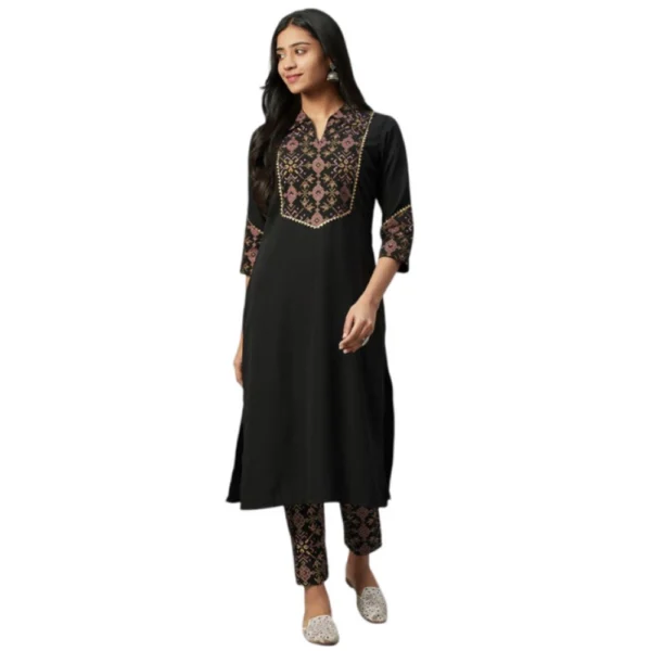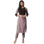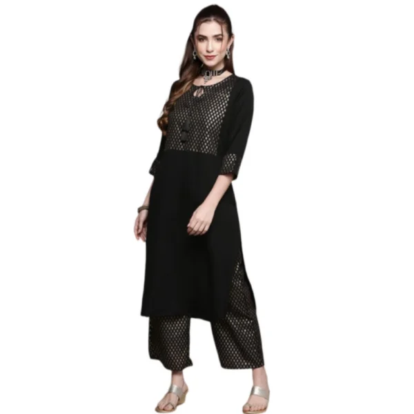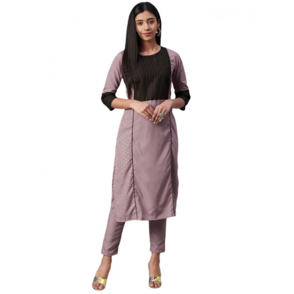 Women’s Casual 3-4Th Sleeve Ethnic Motifs Crepe Kurti and Pant Set