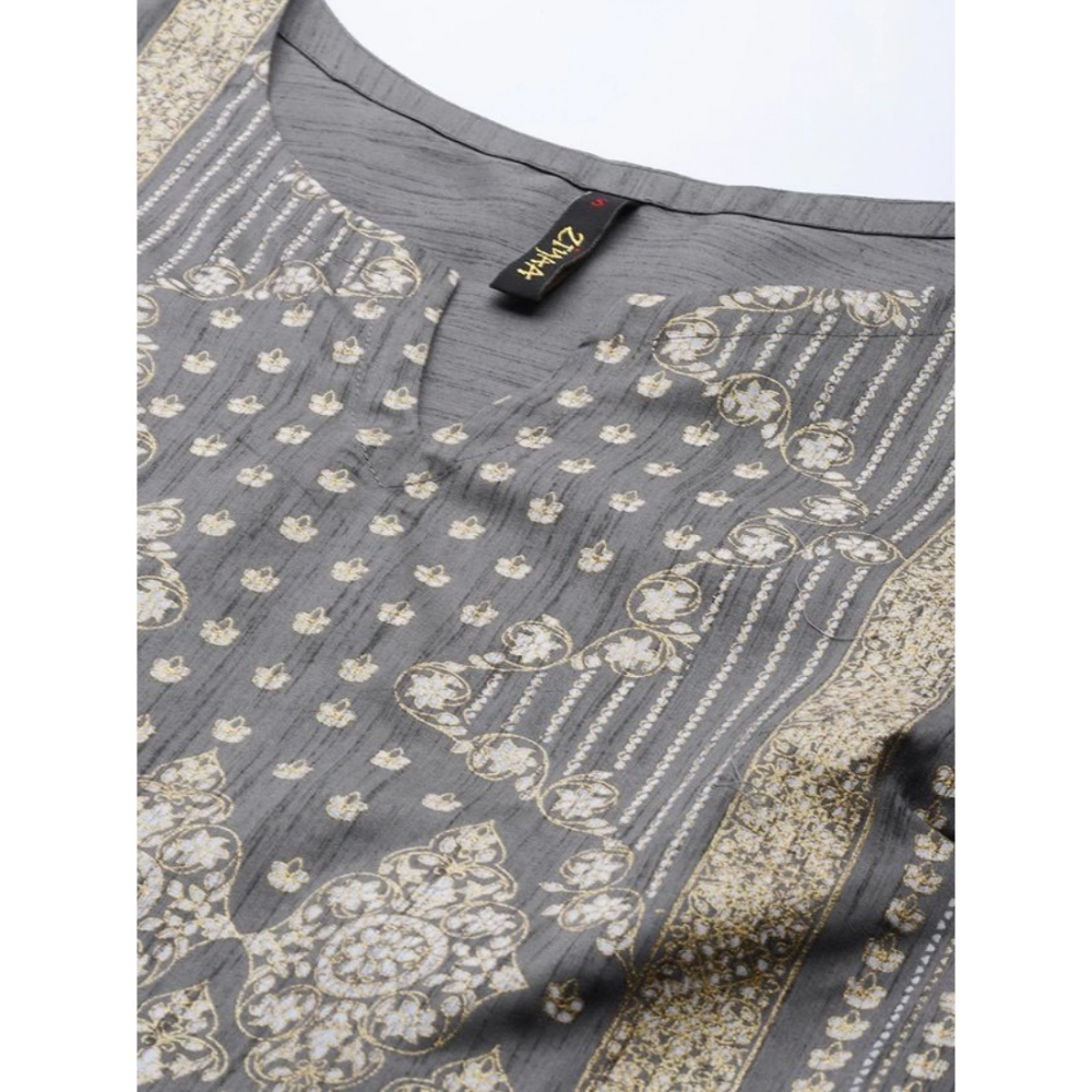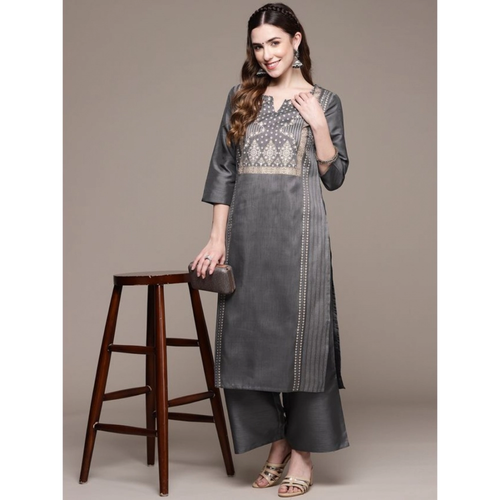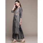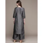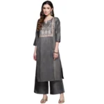 Women’s Casual 3-4Th Sleeve Ethnic Motifs Poly Silk Kurti And Palazzo Set