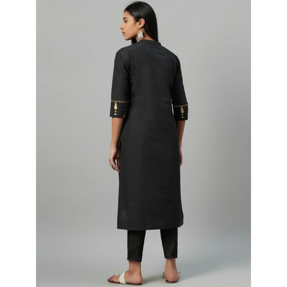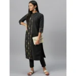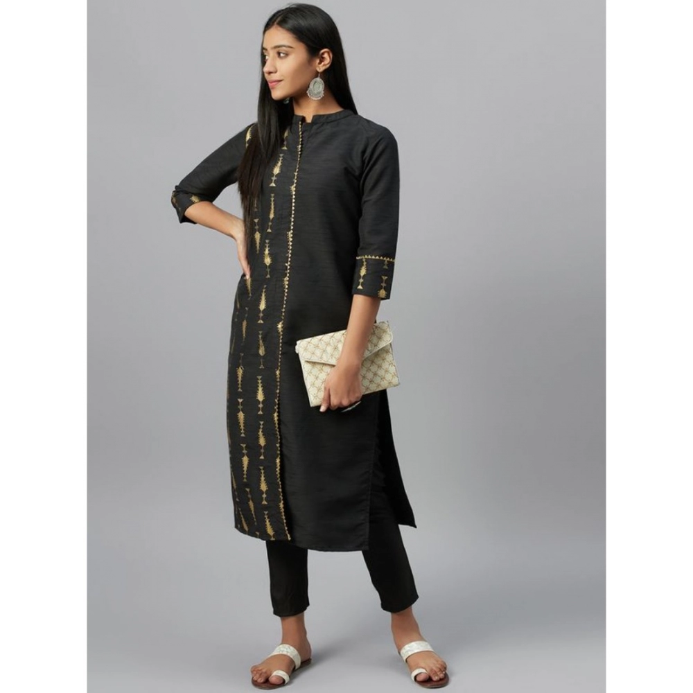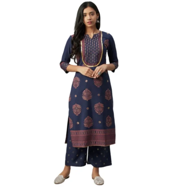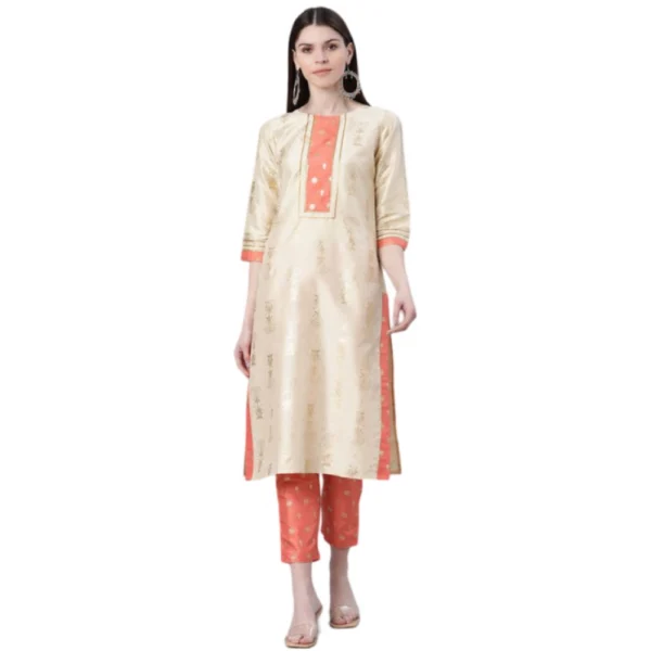 Women’s Casual 3-4Th Sleeve Ethnic Motifs Poly Silk Kurti and Pant Set