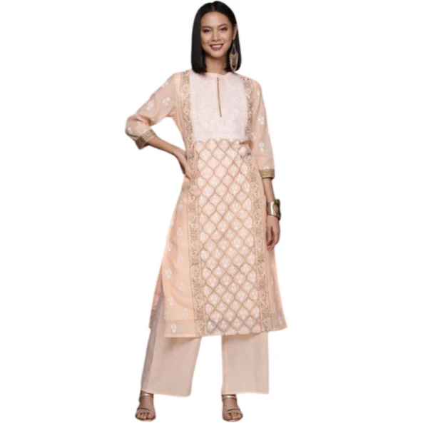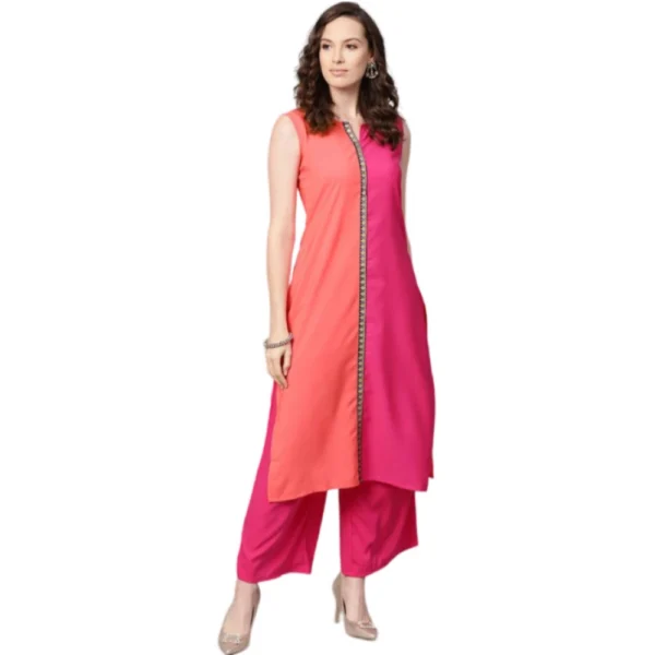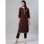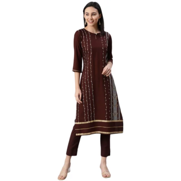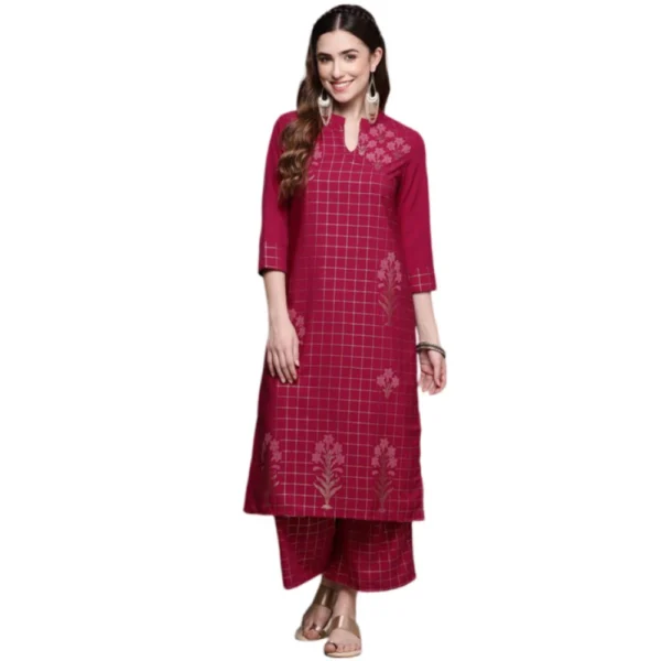 Women’s Casual 3-4Th Sleeve Ethnic Motifs Rayon Kurti And Pant Set