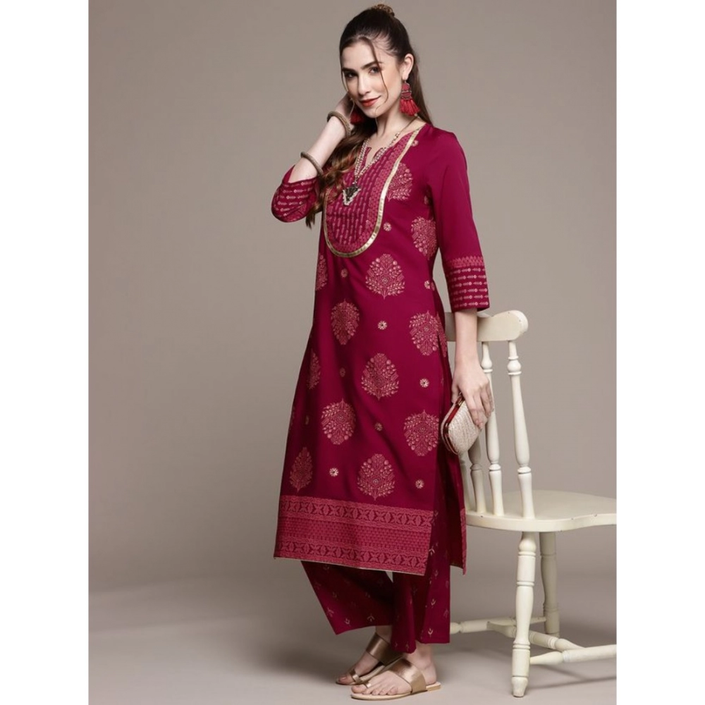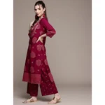 Women’s Casual 3-4Th Sleeve Floral /Ethnic Motifs Crepe Kurti And Palazzo Set