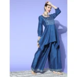 Women’s Casual 3-4Th Sleeve Floral Printed Chinon Kurti And Palazzo Set