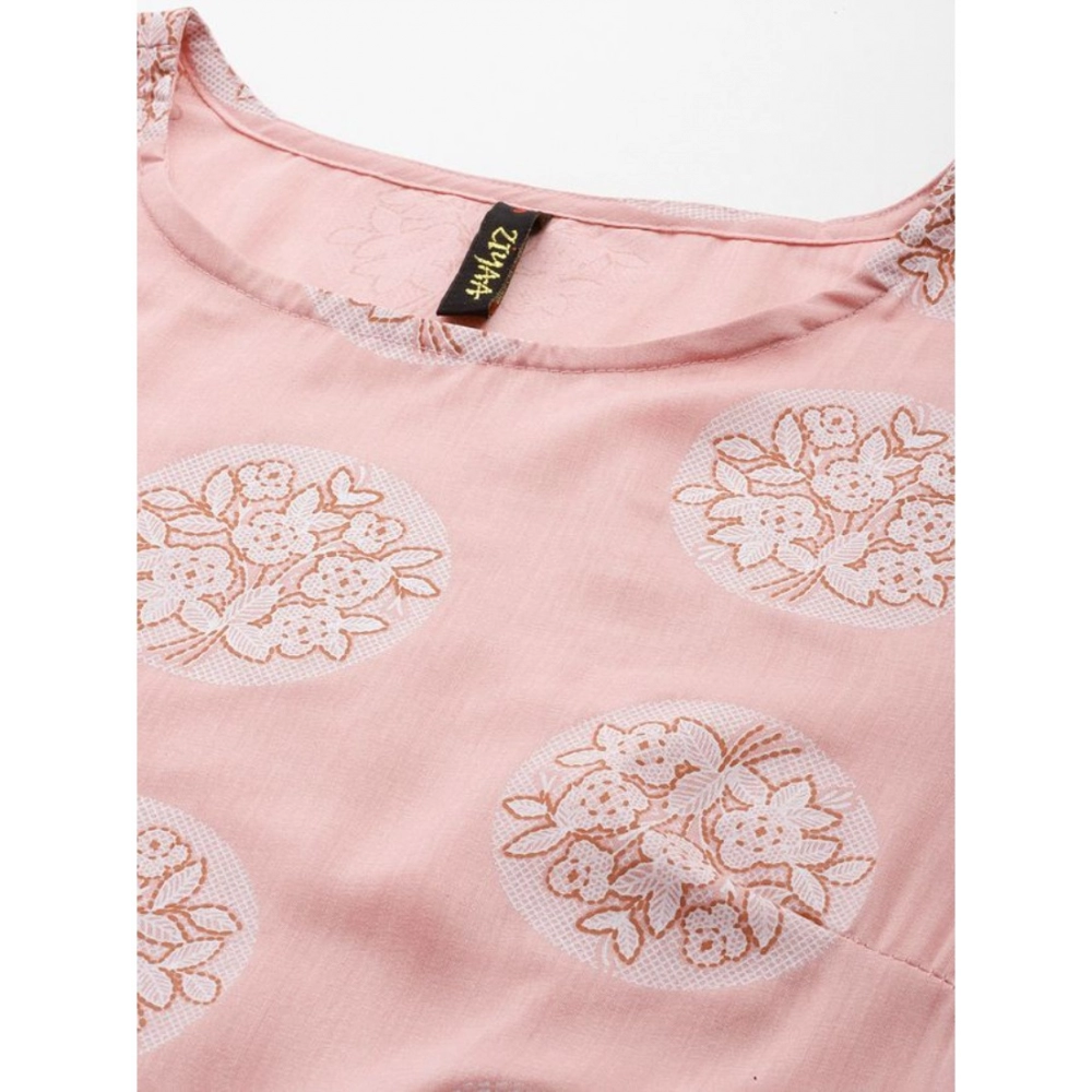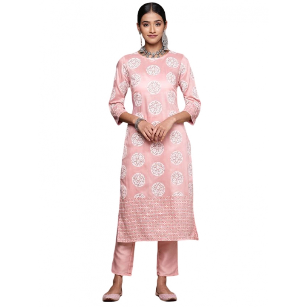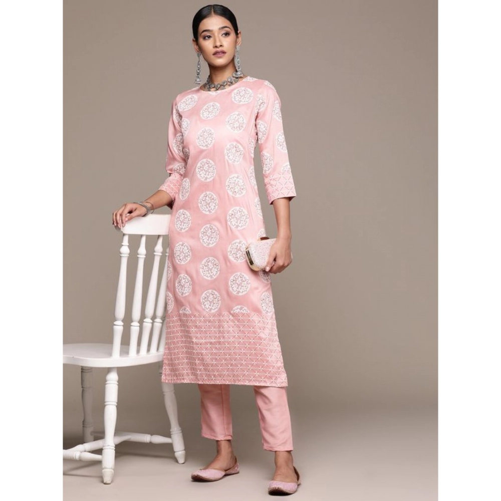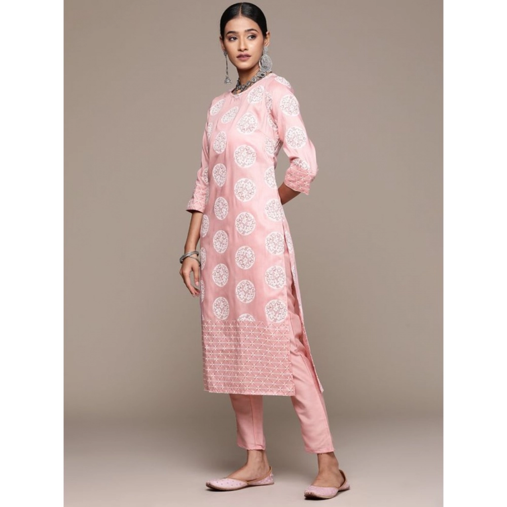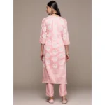 Women’s Casual 3-4Th Sleeve Floral Printed Chinon Kurti and Pant Set
