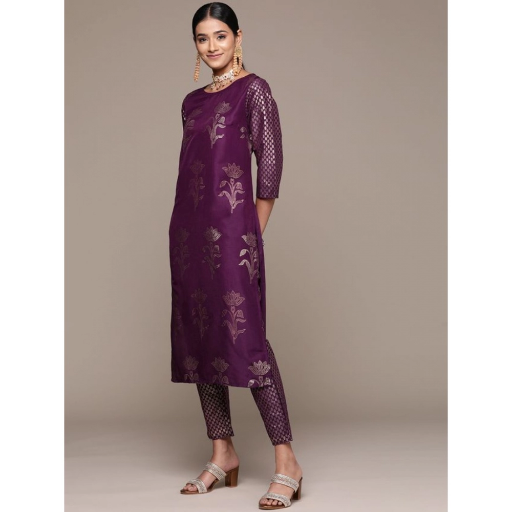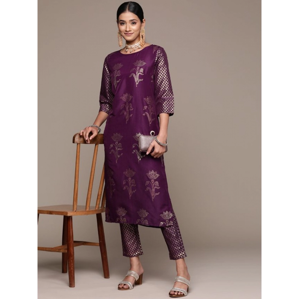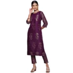 Women’s Casual 3-4Th Sleeve Floral Printed Chinon Kurti and Pant Set