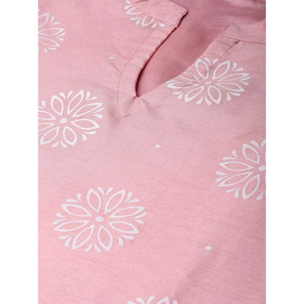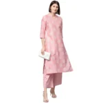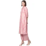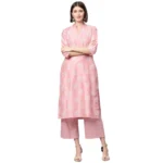 Women’s Casual 3-4Th Sleeve Floral Printed Poly Silk Kurti And Palazzo Set