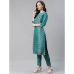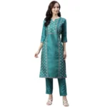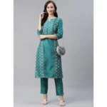 Women’s Casual 3-4Th Sleeve Floral Printed Poly Silk Kurti And Pant Set