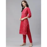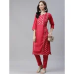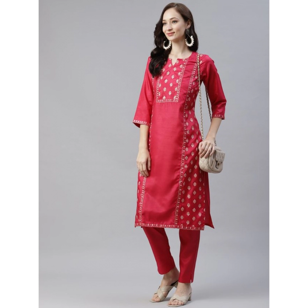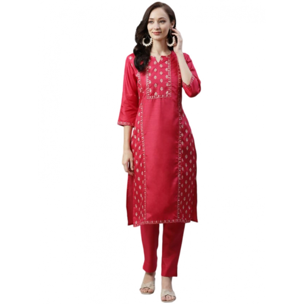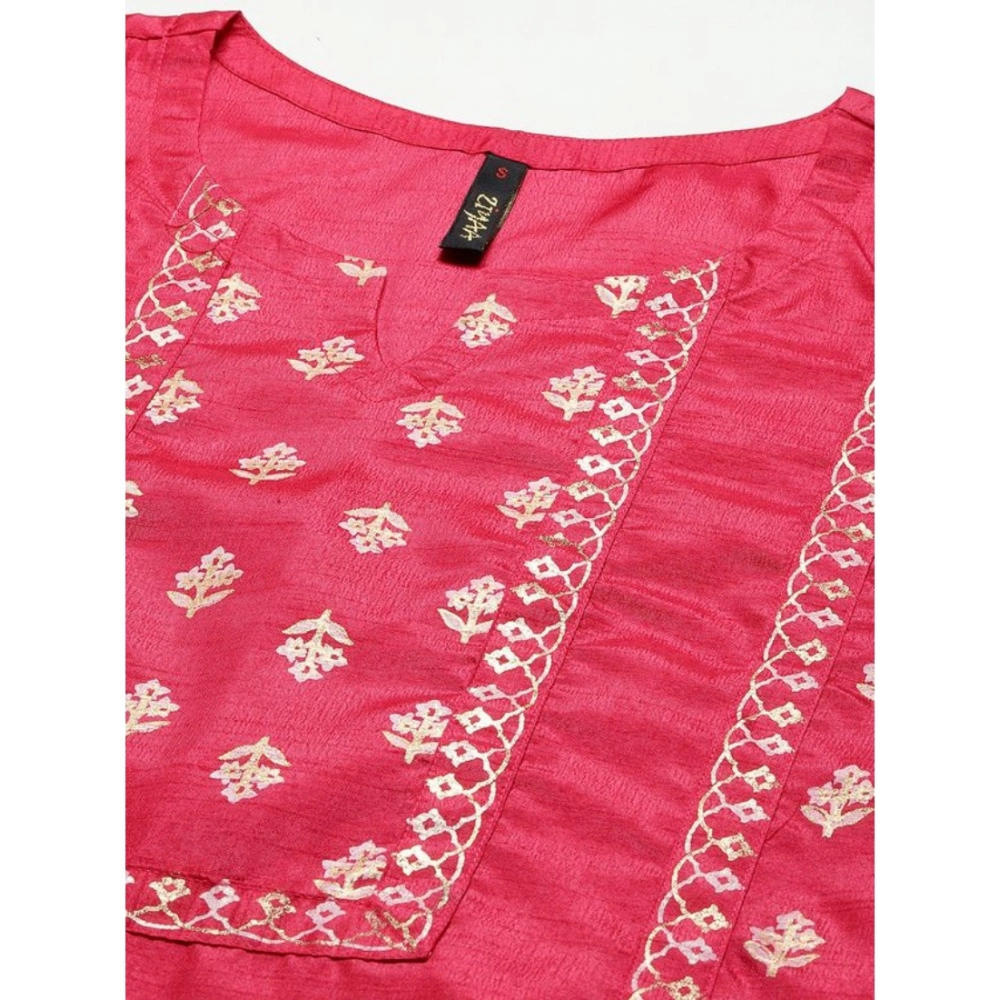 Women’s Casual 3-4Th Sleeve Floral Printed Poly Silk Kurti And Pant Set