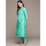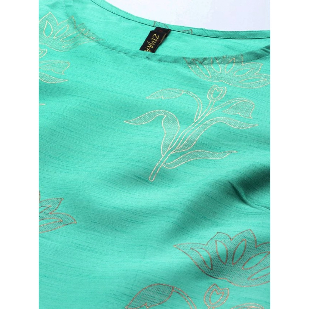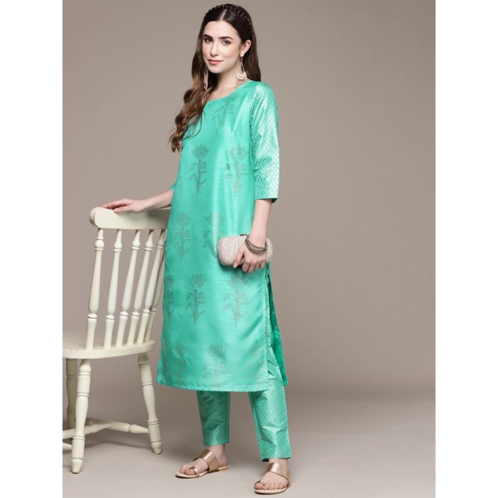 Women’s Casual 3-4Th Sleeve Floral Printed Poly Silk Kurti and Pant Set