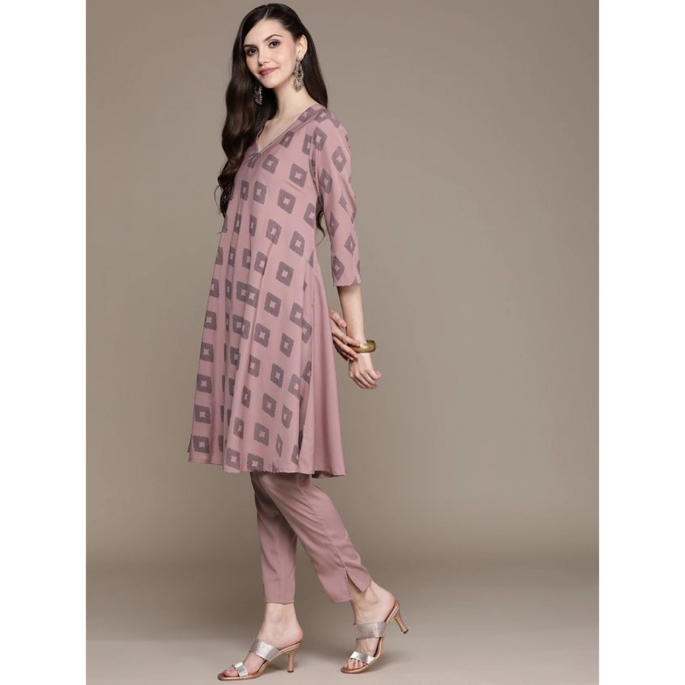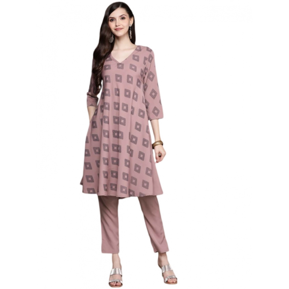 Women’s Casual 3-4Th Sleeve Ikkat Crepe Kurti And Pant Set