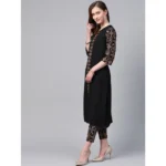 Women’s Casual 3-4Th Sleeve Solid Crepe Kurti And Pant Set