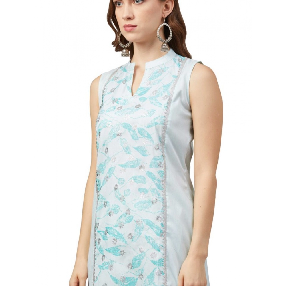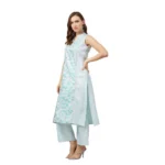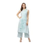 Women’s Casual Sleeveless Abstract Poly Silk Kurti And Palazzo Set