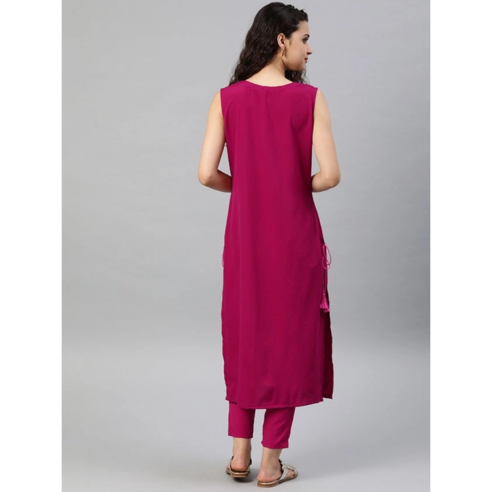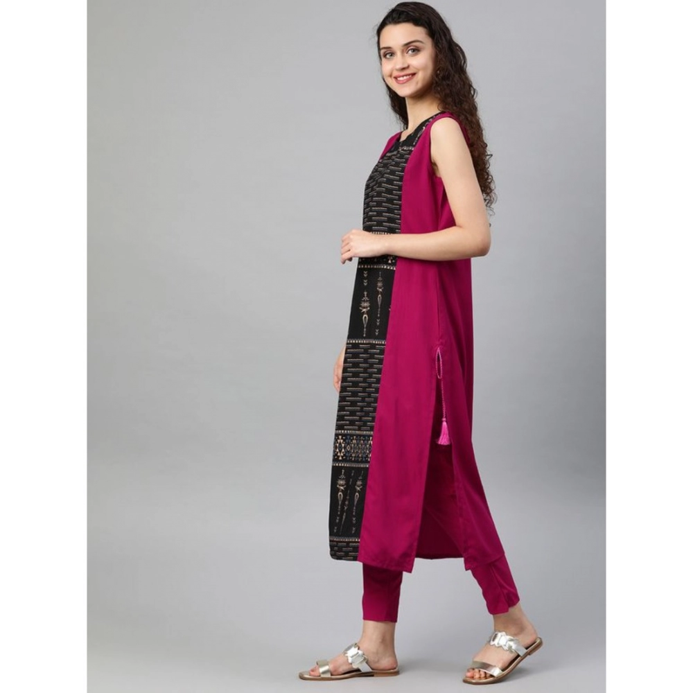 Women’s Casual sleeveless Tribal Crepe Kurti and Pant Set