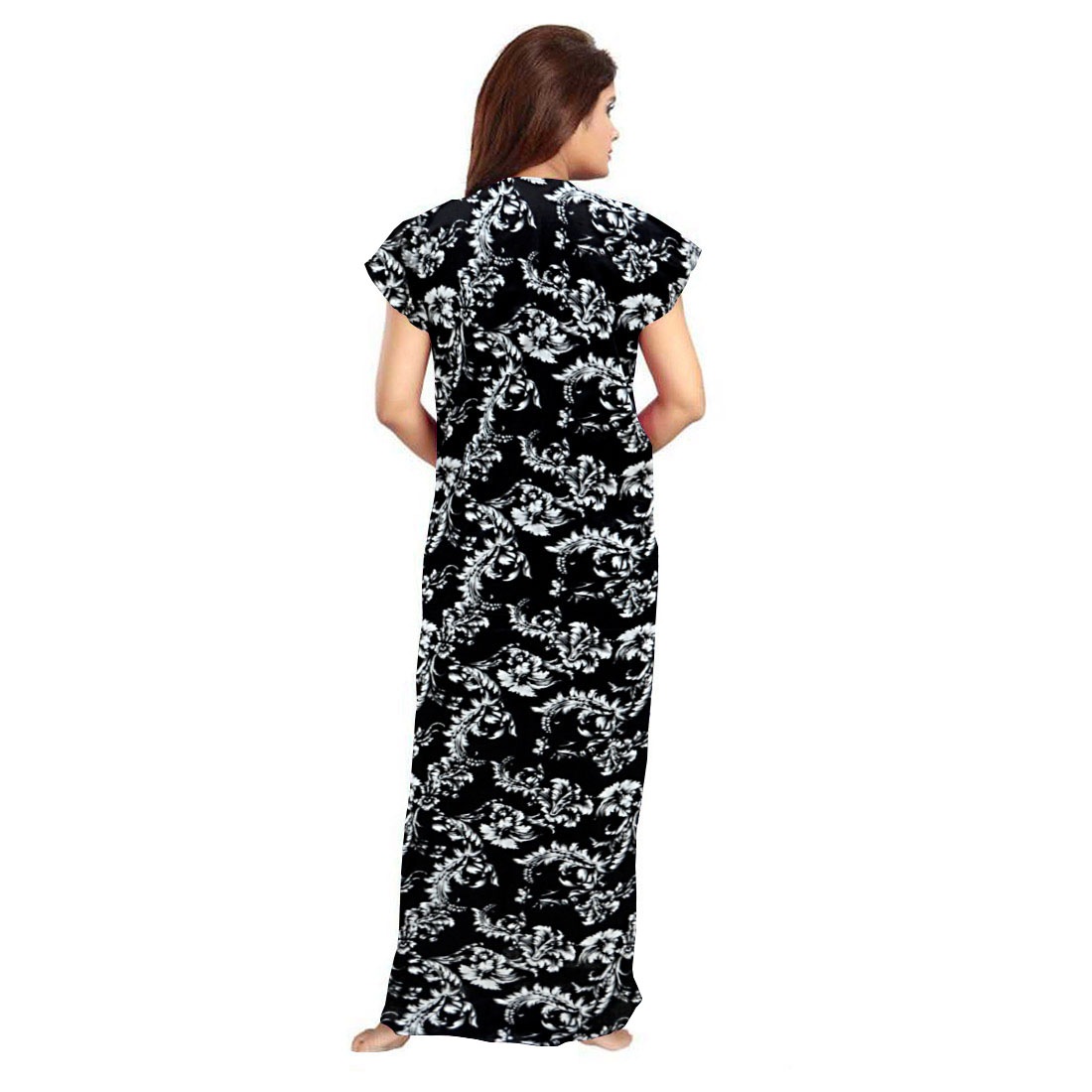 Women’s Full Length Cotton Cotton Printed Maxi Nighty Combo Pack Of 2 (Black)