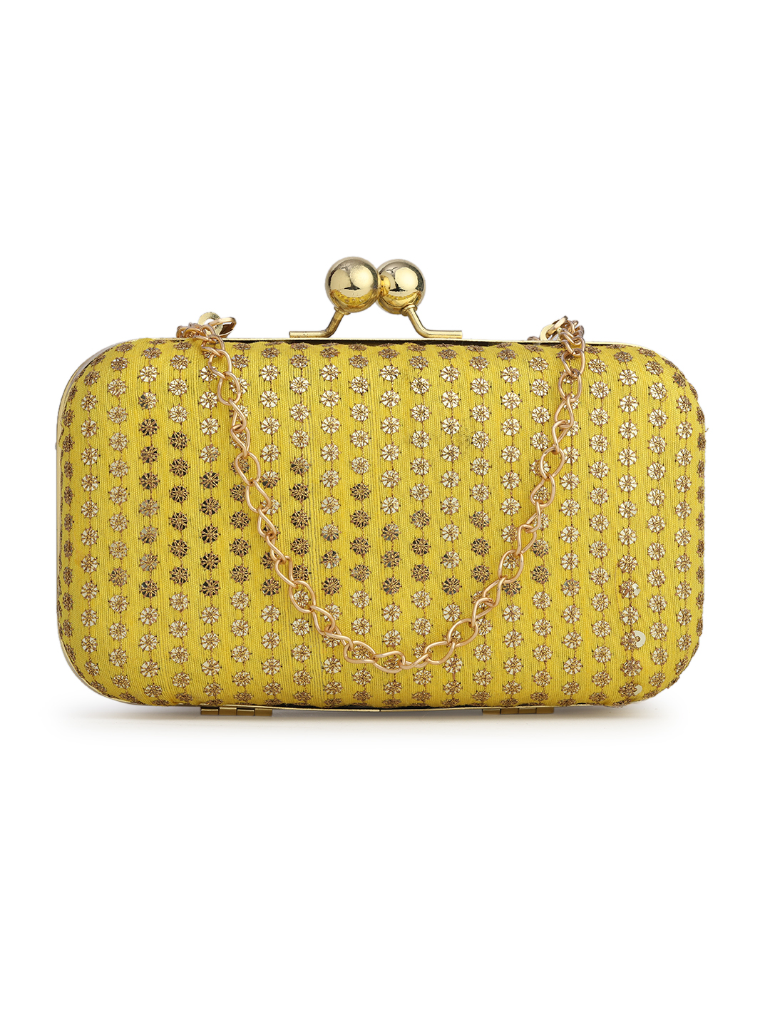 Yellow & Gold Embroidered Box Clutches For Girls and womens