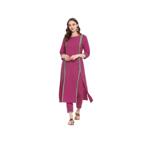 Women’s Casual 3-4Th Sleeve Traditional Crepe Kurti And Pant Set (Wine)