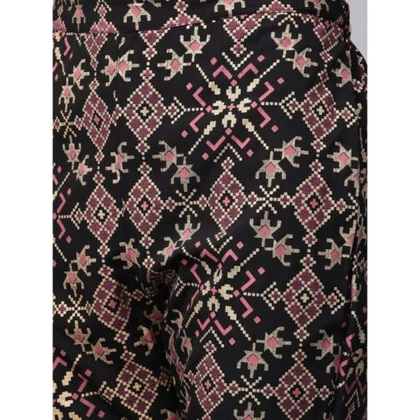 Women’s Casual Full Sleeve Ethnic Motifs Crepe Kurti and Palazzo Set (Black)