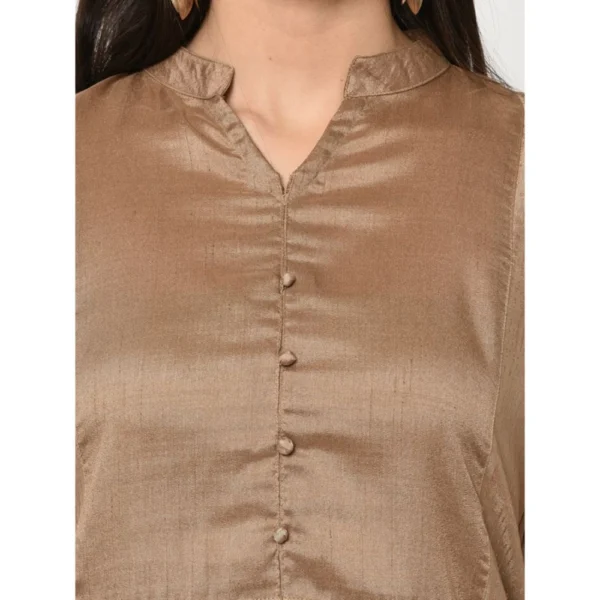 Women’s Casual 3-4Th Sleeve Solid Poly Silk Kurti and Pant Set (Brown)