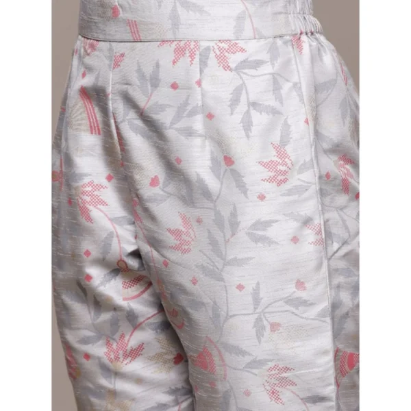 Women’s Casual 3-4Th Sleeve Solid Poly Silk Kurti and Pant Set (Light Grey)