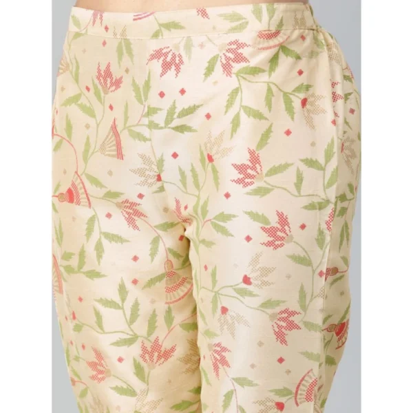 Women’s Casual 3-4Th Sleeve Solid Poly Silk Kurti and Pant Set (Cream)