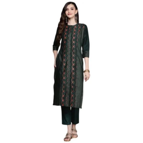 Women’s Casual 3-4Th Sleeve Traditional Crepe Kurti And Pant Set (Green)