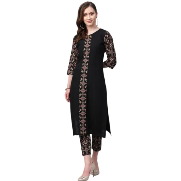 Women’s Casual 3-4Th Sleeve Solid Crepe Kurti And Pant Set (Black)